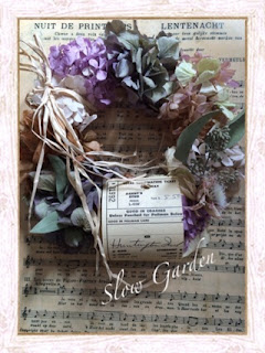 シャビーなブルー系やブラウンのアジサイと